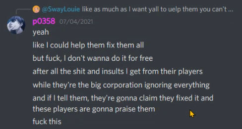 Furthermore, their actions have directly impacted the state of the games and the chances of them ever getting fixed, by: