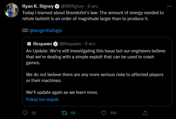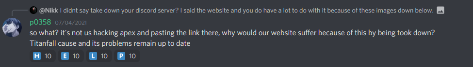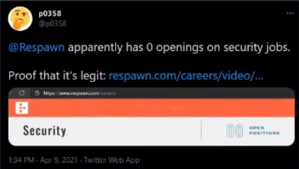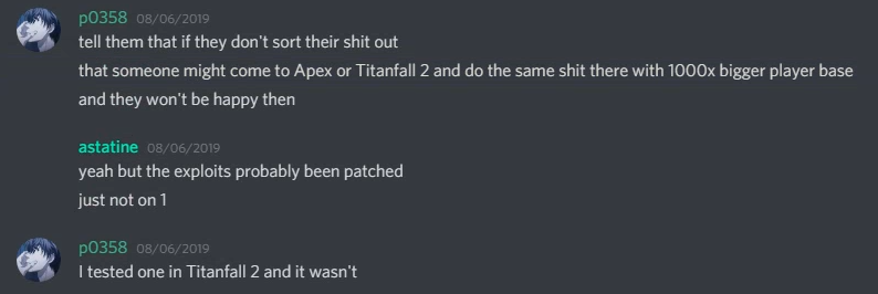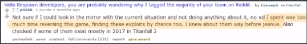 - Causing Respawn to be disinterested in working with p0358 on fixing the game exploits and to fully ignore his article with a list of fixes to implement — leaving the games in a vulnerable state;