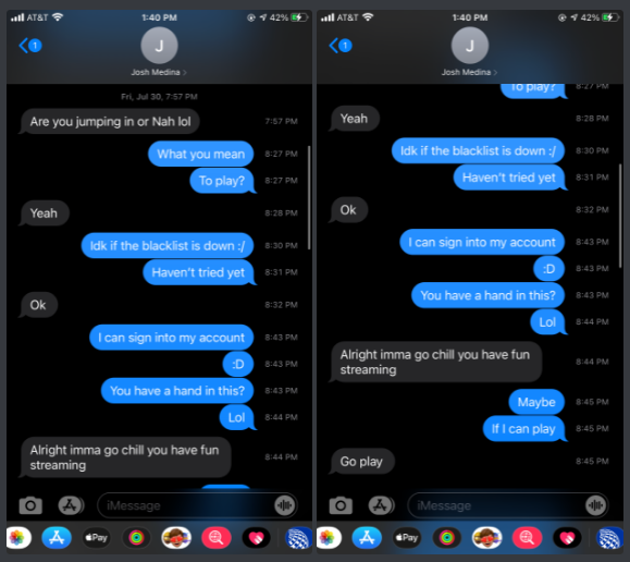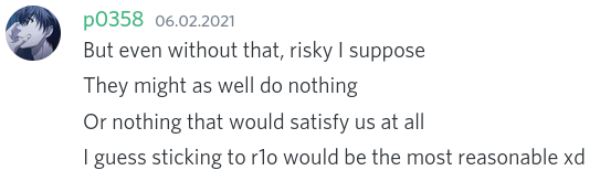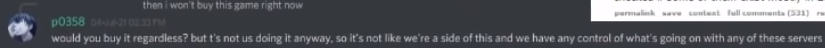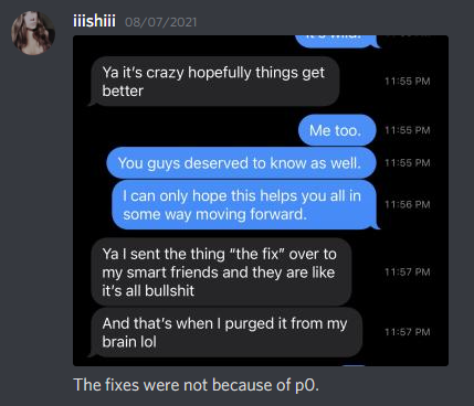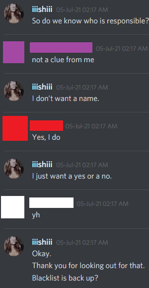 There was a question from Jeanue about blacklist interjected between p0 responding to the claim of 3 accounts. Nowhere in that screenshot is a response to the blacklisting question that iiishiii has claimed there is. Seriously that's all the base of your claims? This is either a lack of basic reading skills or just a lie.