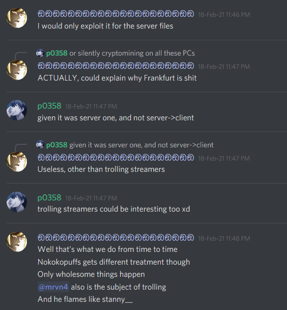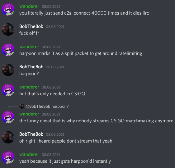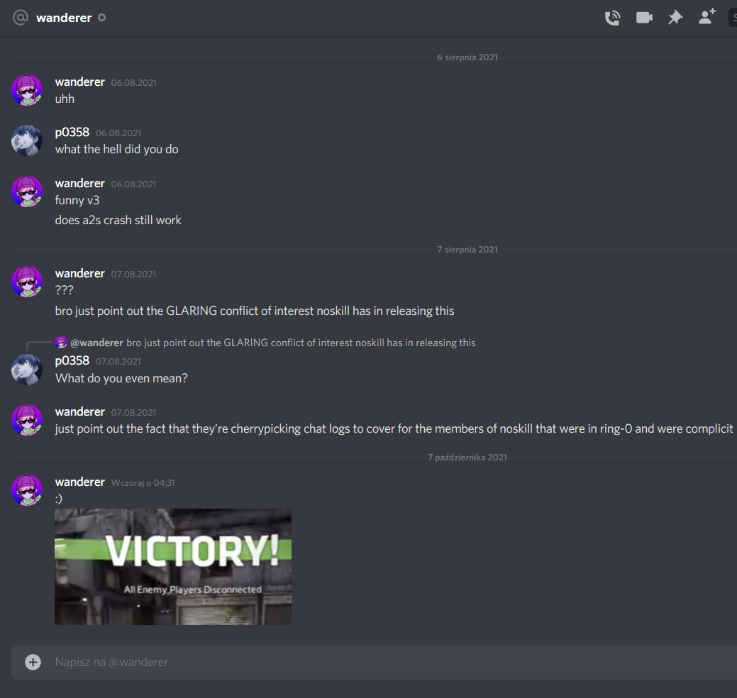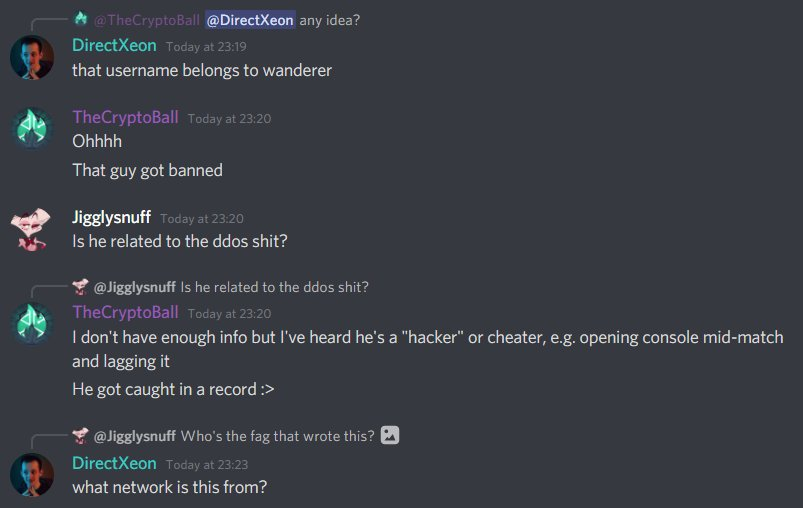 - Cooperating with shady hackers? ✔️ (they see no issues closely cooperating with wanderer, who happens to be able to reproduce Jeanue's Titanfall attacks in CSGO, ones that nobody knew how they were performed; this guy is shadier than all of us combined)
