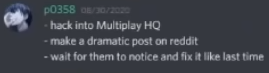 - Creating mass outcry and panic in the community around supposed RCE vulnerability, telling people to fully uninstall the game (!), including unaffected platforms (consoles), which was completely baseless and illogical even if the exploit really existed;