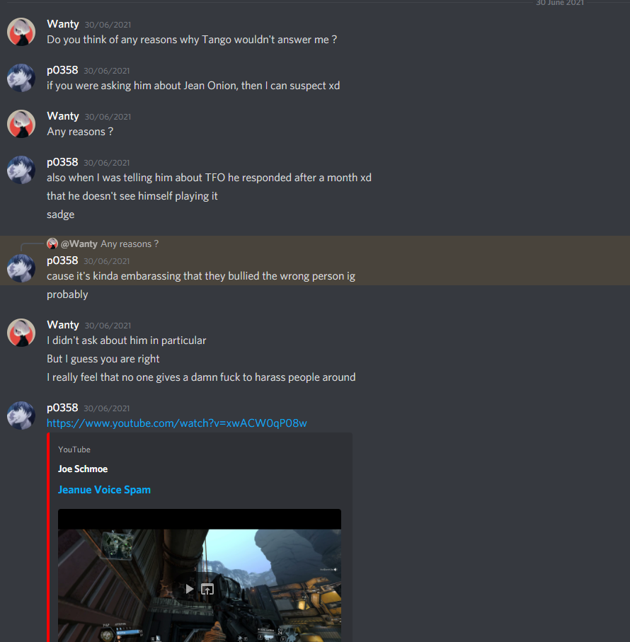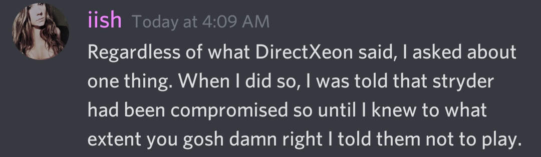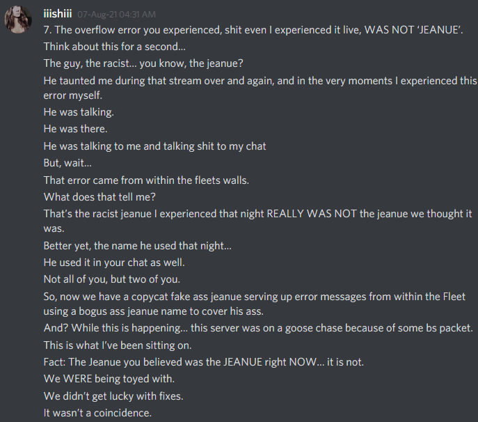 - iiishiii et al have been so desperate to be right about someone being Jeanue that they have followed up the RedTape doc by accusing random modders (scary command line screenshots!) of crashing games, or essentially being a 'Jeanue'.