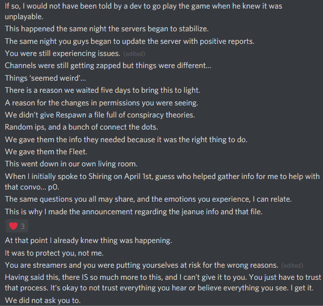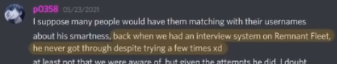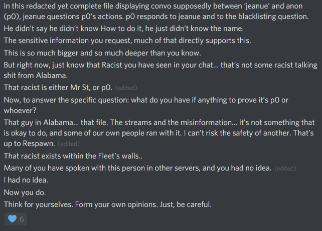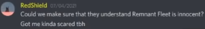 - Was the only person in this group who had the access to hidden Remnant Fleet channels for long time, and had witnessed all the conversations as they happened, without a word of criticism.