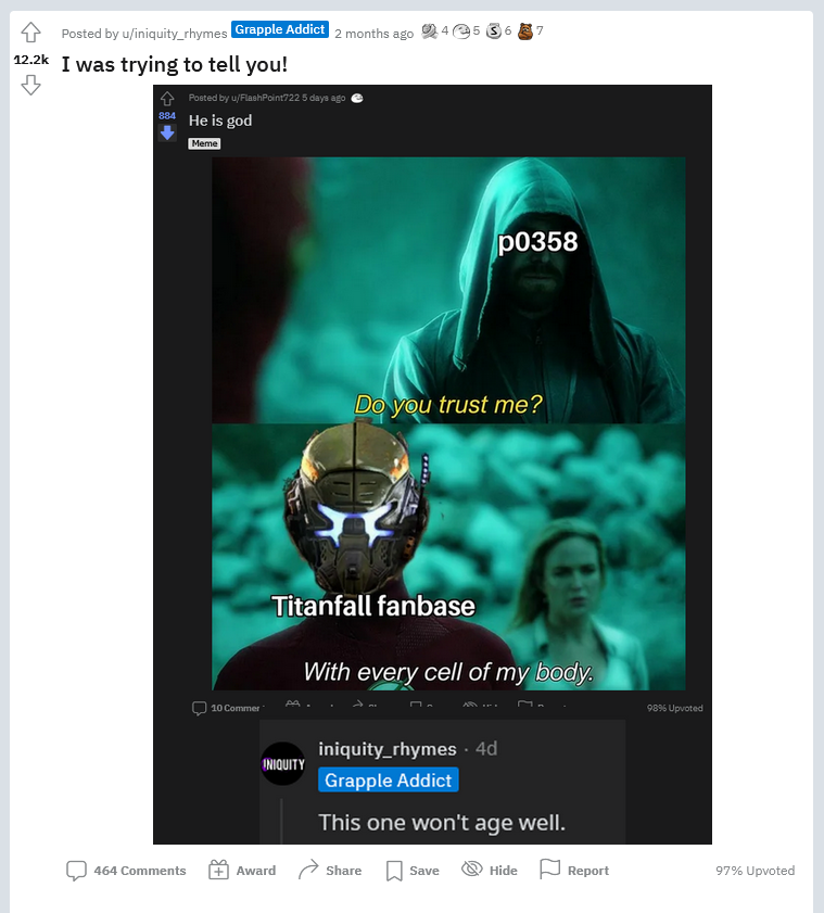 - Falsely considering themselves the self-proclaimed "saviors" of Titanfall while in fact only harming it? ✔️