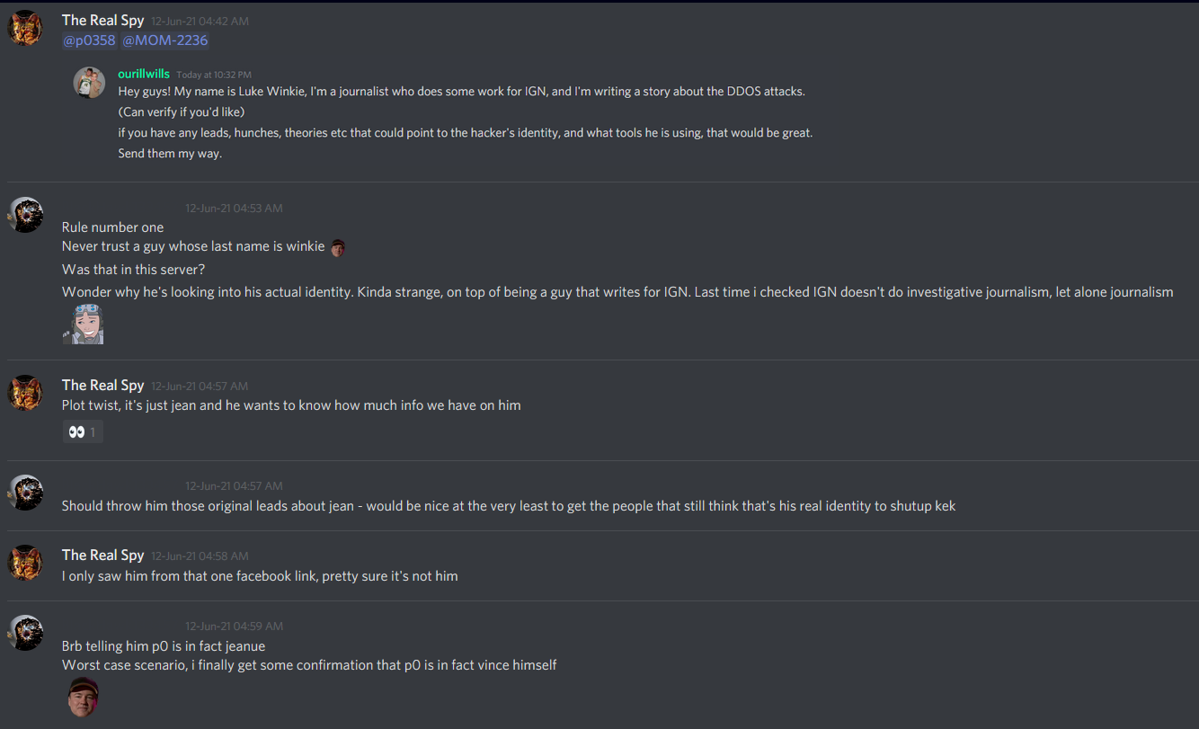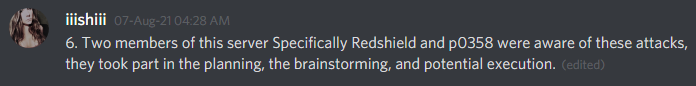 - Actively participated in many of the conversations cited by Operation RedTape, and has since (apparently) gone back and scrubbed many of his own messages. Discord logs do not record users deleting their own messages (good attention to detail).