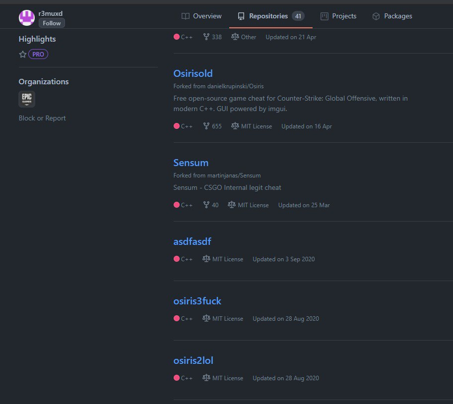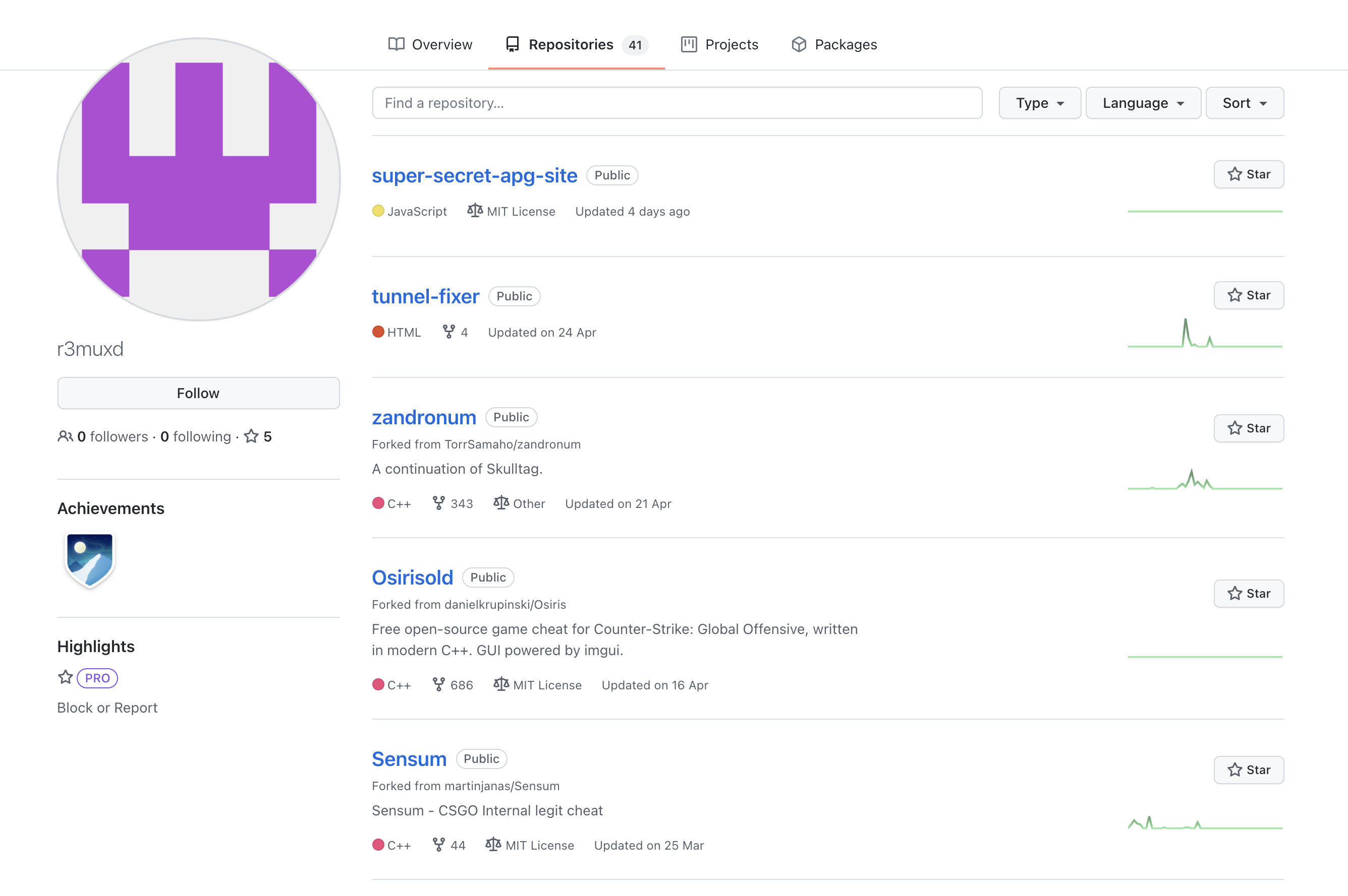- Cheat developer and hacker of CS:GO, actively participates in HvH (Hack vs Hack) scene. Known for crashing CS:GO servers in a similar fashion to what Jeanue does in Titanfall. GitHub