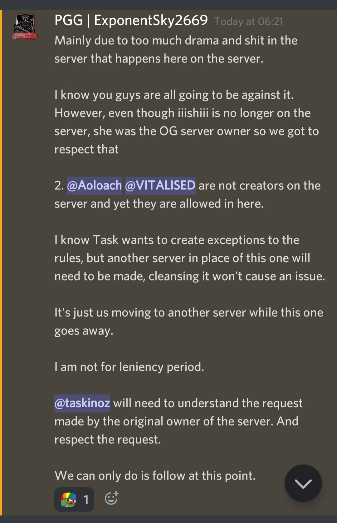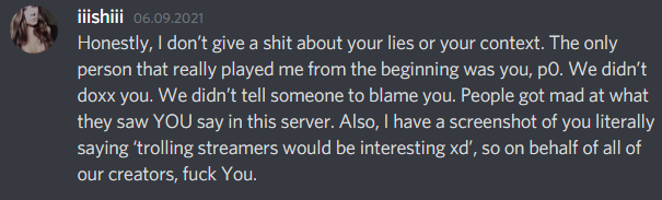 - Has been kicking people from said server for basically any reason under the sun because it's "private," even though non-member streamers have said the invite link to that discord has been "everywhere".