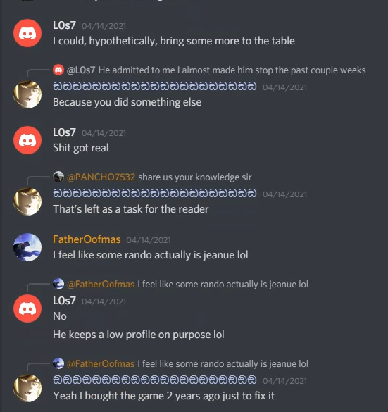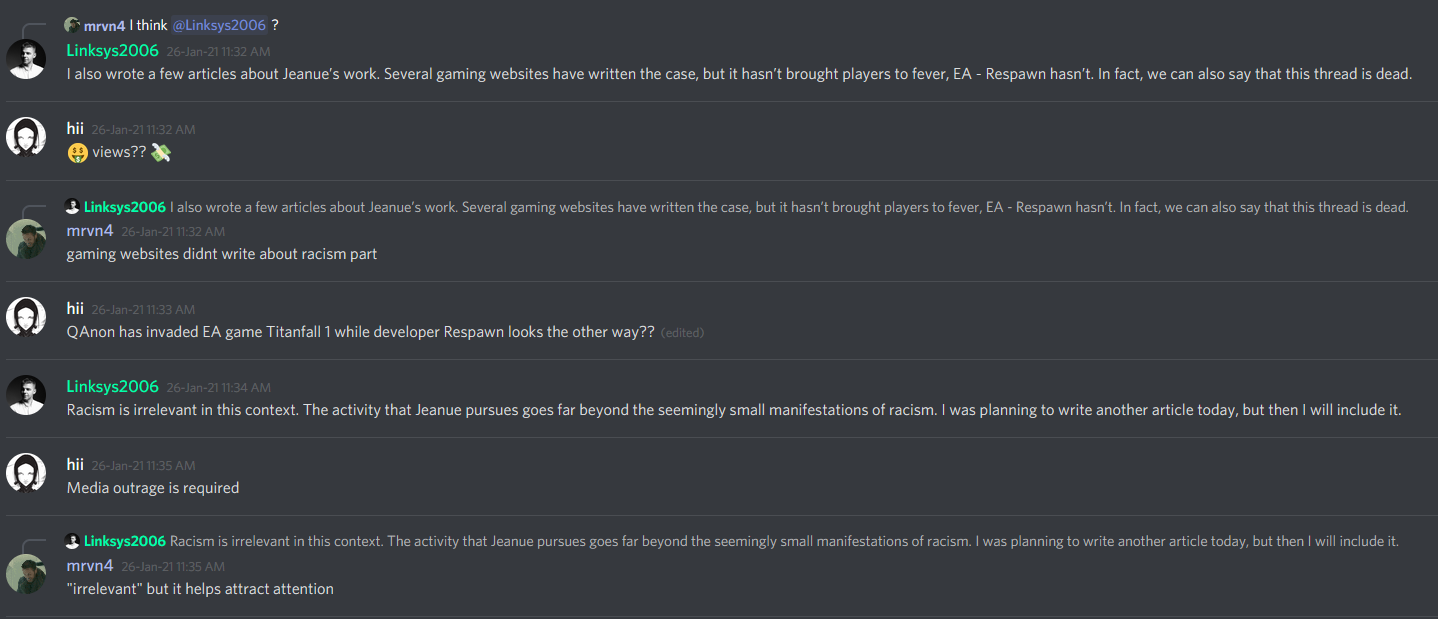 It is worth noting that when we refer to "Jeanue", we in fact refer to the group of people that's been behind the Titanfall attacks. It is hard to tell them apart, and the fact that they changed their names multiple times a day back in 2018 and 'till the present day made it impossible to always know who is who. However, the first speedhacker from their group that's been known for the longest time went by the handle of "jeanue" before the name changing fest has started. Other members of the group ended up using the name for themselves as well on various occasions, given it was the only known name that people recognized in the long run, complicating the situation further.