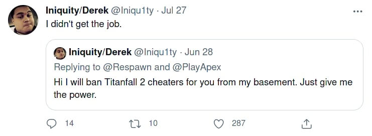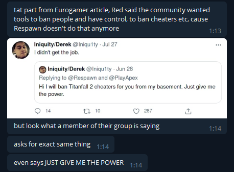 - Being power freaks? ✔️ (trying to destroy people who didn't bow to them + asking for the power of banning people in Titanfall 2)