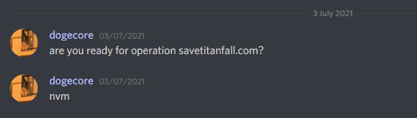 - The entire allegation that MrSteyk/dogecore/p0358 had an elaborate plan to kill Titanfall 1 & 2 in order to boost up Titanfall Online is completely false. That is a straight up conspiracy theory, and one that is completely illogical.