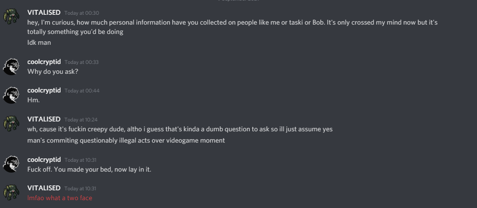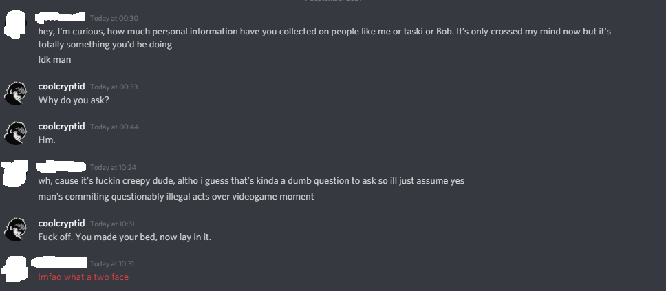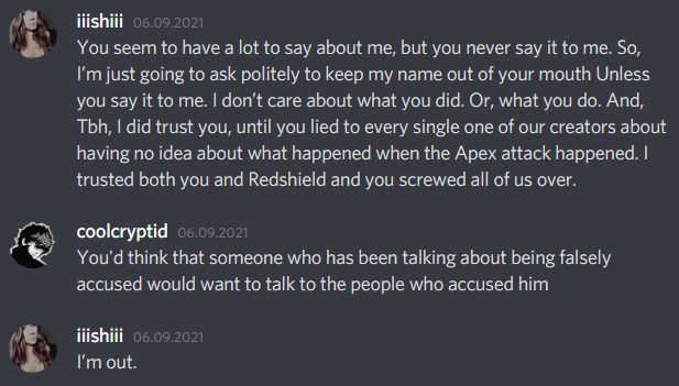 Though upon realizing the range of their mistakes, they opted to cover the situation up. Coolcryptid has before deleted all his reddit comments around the situation, now he deleted his whole account and wiped discord DMs.