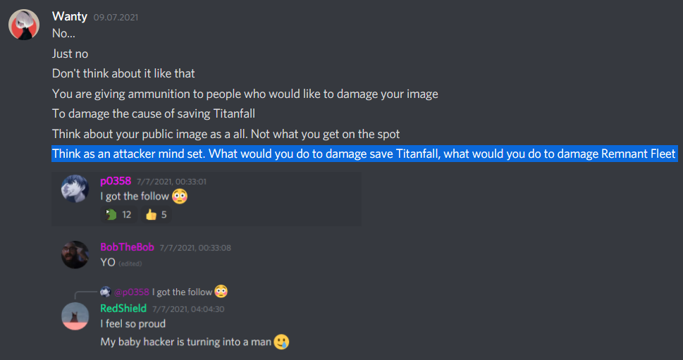 - Wanty (one of the authors of the RedTape doc) then began suggesting that they continue the hack as long as possible to bring awareness to the issues. Remember that savetitanfall.com was not run by the same admins as Remnant Fleet!