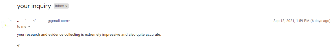 - Very shady track record, with people from her circle claiming she already lied in the past about getting hacked and did other weird things.