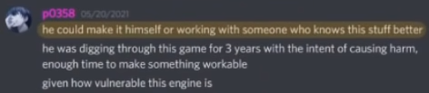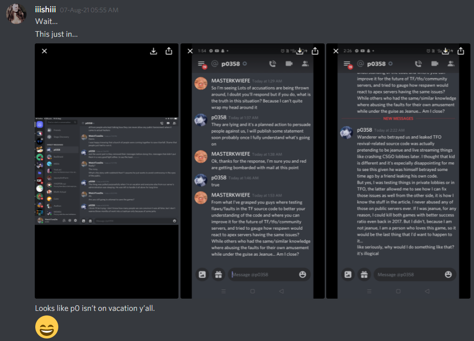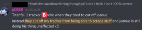 - Due to p0 and Steyk working closely on reverse engineering for Titanfall and learning/fixing Jeanue's exploits, p0358 chose not to expose him by simply staying quiet on the matter.